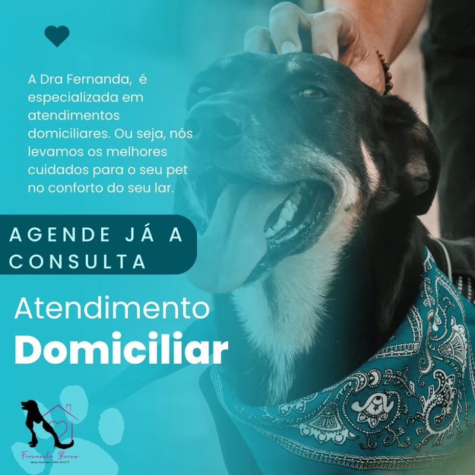 Sobre a Fernanda Bueno Veterinária em Domicílio: Médica veterinária com vasta experiência em clínica médica de cães e gatos. Acredito que a saúde do seu pet deve ser prioridade, e estou aqui para garantir que cada consulta seja uma experiência positiva e confortável.